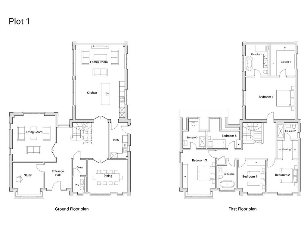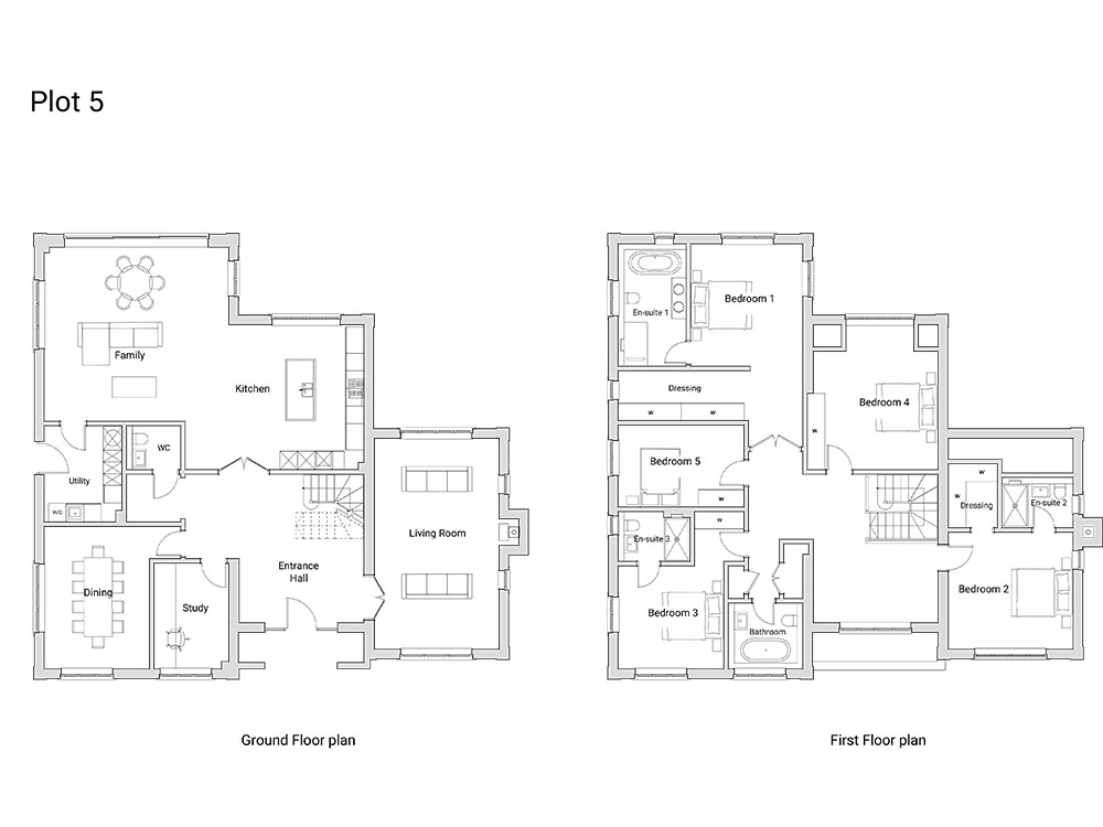 Each of the five detached homes in this private gated development has been thoughtfully designed to offer, generous interiors with light-filled, open-plan living spaces and high-specification finishes throughout. Each home boasts a bespoke kitchen and luxurious bathrooms, and a large private garden, perfect for entertaining or enjoying the surrounding natural beauty.