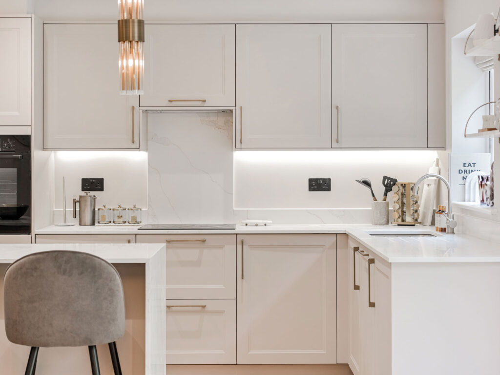 Our fully fitted kitchens boast stone worktops, beautiful cabinetry, and high-quality integrated appliances, while our stunning bathrooms enjoy contemporary sanitaryware and an impressive finish. Attention is paid to every detail.
